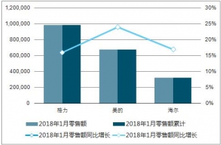 空調(diào)各品牌2019年1月累計銷售額及增速(千元、%)