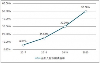 2017-2020年中國(guó)正面人臉識(shí)別滲透率