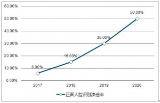 2017-2020年中國正面人臉識別滲透率