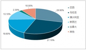 中國凍牛肉進口量國別占比