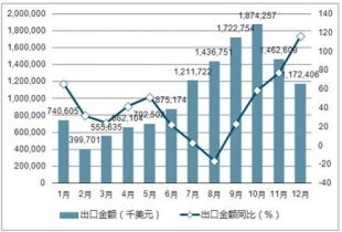 2019年1-12月中國(guó)游戲機(jī)及零附件出口金額為12800082千美元,同比增長(zhǎng)32%。