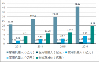 2013-2016年我國服務機器人細分市場規(guī)模走勢圖