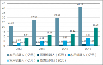 2013-2016年我國服務機器人細分市場規(guī)模走勢圖