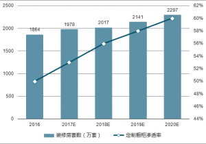 2016-2020年中國定制櫥柜滲透率測算(終端價(jià)口徑)