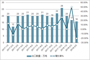 2017-2019年Q1中國電線和電纜出口量及增長走勢
