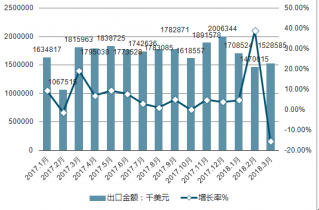 2019年1-3月中國出口電線和電纜金額達到46.93億美元,同比增長4.4%。2013-2019年我國電線和電纜出口額基本保持穩(wěn)步增長趨勢,五年年均復合增長率為1.56%。