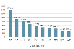 2019年中國小額貸款貸款余額為9799億元,2019年第.一季度貸款余額9630億元,一季度減少111億元。貸款余額排名前十的省市分別為:重慶、江蘇、廣東、浙江、四川、山東、廣西、安徽、湖北、遼寧。