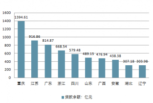 2019年中國小額貸款貸款余額為9799億元,2019年第.一季度貸款余額9630億元,一季度減少111億元。貸款余額排名前十的省市分別為:重慶、江蘇、廣東、浙江、四川、山東、廣西、安徽、湖北、遼寧。