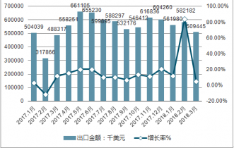 2017-2018Q1中國摩托車出口金額及增長走勢
