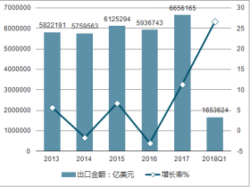 2013-2018Q1年中國摩托車出口金額及增長走勢
