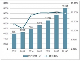 2012-2016年間,中國在線教育用戶規(guī)模快速發(fā)展,從2012年5957萬人增長至2016年的1.12億人,年均復合增長率達到17.18%。2016年在線教育用戶規(guī)模為1.12億人,同比增長19.8%。預計2019年中國在線教育用戶規(guī)模將達到1.35億人,到2019年用戶規(guī)模將超1.6億人。