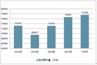 2014-2019年中國鋼材行業(yè)表觀需求量