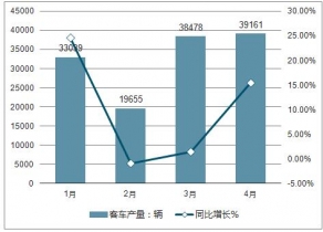 2018.1-4月客車產(chǎn)量及同比增長走勢