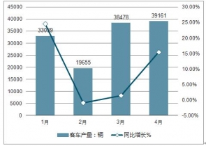 2018.1-4月客車產量及同比增長走勢