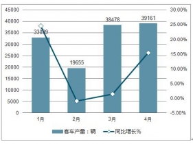 2018.1-4月客車產(chǎn)量及同比增長走勢