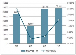 2018.1-4月客車產(chǎn)量及同比增長走勢