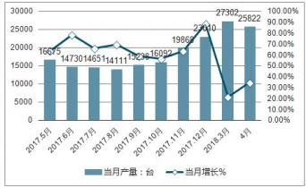 2019年4月中國(guó)挖掘機(jī)產(chǎn)量為25822臺(tái),同比增長(zhǎng)35.8%。2019年1-4月中國(guó)挖掘機(jī)產(chǎn)量為87534臺(tái),累計(jì)增長(zhǎng)35.7%。