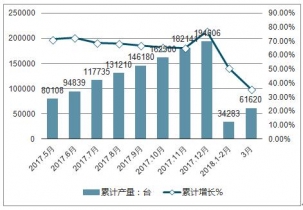 2019年4月中國挖掘機(jī)產(chǎn)量為25822臺,同比增長35.8%。2019年1-4月中國挖掘機(jī)產(chǎn)量為87534臺,累計(jì)增長35.7%。