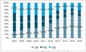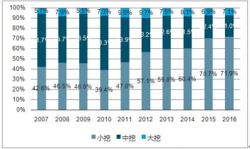 2007年-2016年華中地區(qū)挖掘機(jī)械產(chǎn)品結(jié)構(gòu)情況