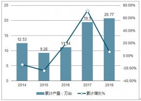 圖表:2014-2019年中國挖掘機(jī)行業(yè)供給規(guī)模分析