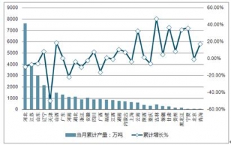 2019年4月,中國鋼材行業(yè)產量9226.5萬噸,同比增長8.5%。2019年1-4月中國鋼材行業(yè)累計產量33734.1萬噸,累計增長5%。