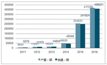 2012-2016年中國純電動汽車產(chǎn)銷量走勢