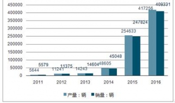 2012-2016年中國(guó)純電動(dòng)汽車(chē)產(chǎn)銷(xiāo)量走勢(shì)