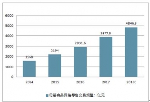 近幾年,中國(guó)母嬰商品網(wǎng)絡(luò)零售交易規(guī)模不斷擴(kuò)大,2014年母嬰商品網(wǎng)絡(luò)零售額僅1568億元,2015年突破2000億,達(dá)到2194億元,2016年逼近3000億元,達(dá)到2931.6億元。2019年進(jìn)一步增長(zhǎng),母嬰商品網(wǎng)絡(luò)零售總額387.5億元,同比增長(zhǎng)32.3%。近幾年,中國(guó)母嬰商品網(wǎng)絡(luò)零售額增速呈現(xiàn)下降的趨勢(shì)。預(yù)計(jì)2019年市場(chǎng)規(guī)模將達(dá)到4846.9億元。
