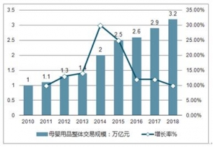 2010-2019年中國(guó)母嬰用品交易規(guī)模及增長(zhǎng)率