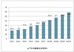 2012-2021年中國汽車消費(fèi)融資滲透率預(yù)測