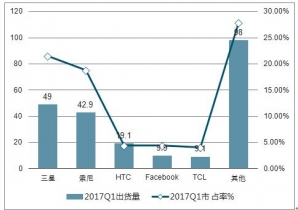 2017Q1全球 VR 硬件廠商出貨量及市場份額