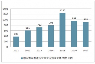 2011-2019年水泥制品制造行業(yè)企業(yè)虧損企業(yè)單位數(shù)