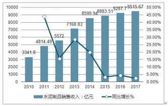 2019年,水泥制品制造行業(yè)銷售收入為9515.67億元,同比增長2.45%。