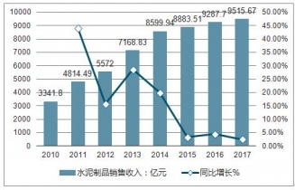 2010-2019年水泥制品制造行業(yè)銷售收入及增長(zhǎng)