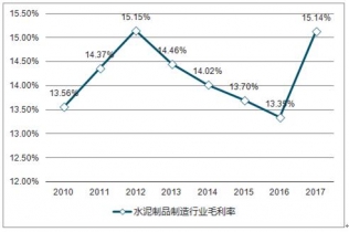 2010-2019年水泥制品制造行業(yè)毛利率