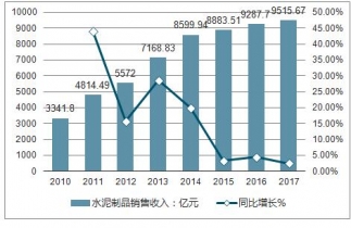 2019年,水泥制品制造行業(yè)銷售收入為9515.67億元,同比增長2.45%。