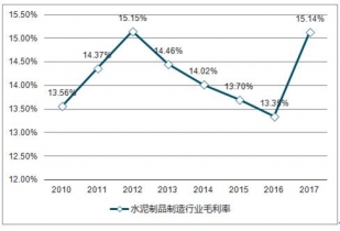 2010-2019年水泥制品制造行業(yè)毛利率