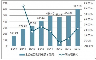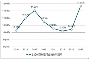 017年,水泥制品制造行業(yè)產(chǎn)品利潤總額607.86億元,同比增長23.04%;毛利率及銷售利潤率分別達到15.14%、11.85%,均較上年提高1.75個百分點、1.63個百分點。