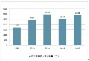 2012-2016年機(jī)動(dòng)車駕駛?cè)嗽黾訑?shù)量