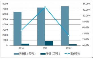 2016-2019年中國(guó)氧化鋁年度消費(fèi)量、增幅及增長(zhǎng)率%預(yù)測(cè)