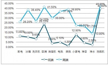 2019年1-10月低端V.S高端家電產(chǎn)品零售額滲透率