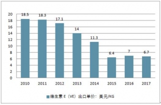 我國(guó)維生素 E(VE)出口單價(jià)