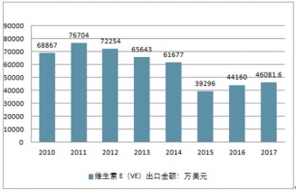 圖表:國(guó)際維生素E市場(chǎng)規(guī)模