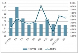 2019年4月份,原油生產(chǎn)1551萬噸,同比下降2.3%,降幅比上月擴(kuò)大0.1個百分點(diǎn);日均產(chǎn)量51.7萬噸,比上月增加0.2萬噸。1-4月份,原油產(chǎn)量6225萬噸,同比下降2.1%,降幅比1-3月擴(kuò)大0.1個百分點(diǎn)。