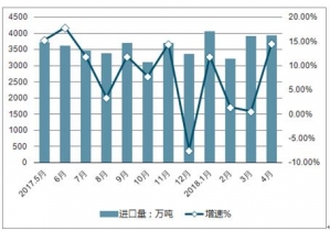 4月份,原油進(jìn)口大幅增長,進(jìn)口3946萬噸,同比增長14.7%,增速比上月加快14.1個百分點(diǎn);日均進(jìn)口131.5萬噸,再創(chuàng)歷史新高。1-4月份,進(jìn)口原油1.5億噸,同比增長8.9%。
