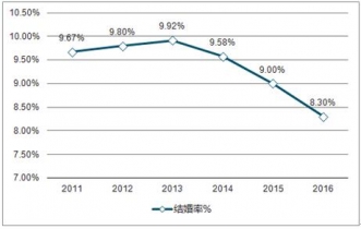 2016年,全國依法辦理結(jié)婚登記比上年下降6.7%。隨著受教育程度的提高,結(jié)婚年齡也在不斷推后。
