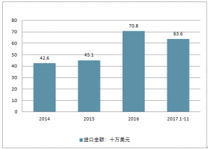 2019年1-11月,進(jìn)口數(shù)量219.7萬升,進(jìn)口金額636萬美元。