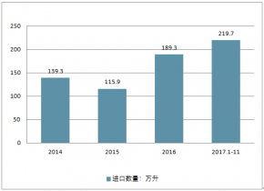 2014-2019年1-11月我國白酒進(jìn)口量情況