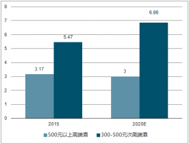 2015和2020年次高端和高端白酒銷量預(yù)計(jì)(萬噸)