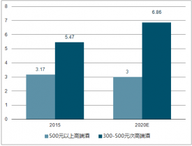 2015和2020年次高端和高端白酒銷量預(yù)計(jì)(萬(wàn)噸)